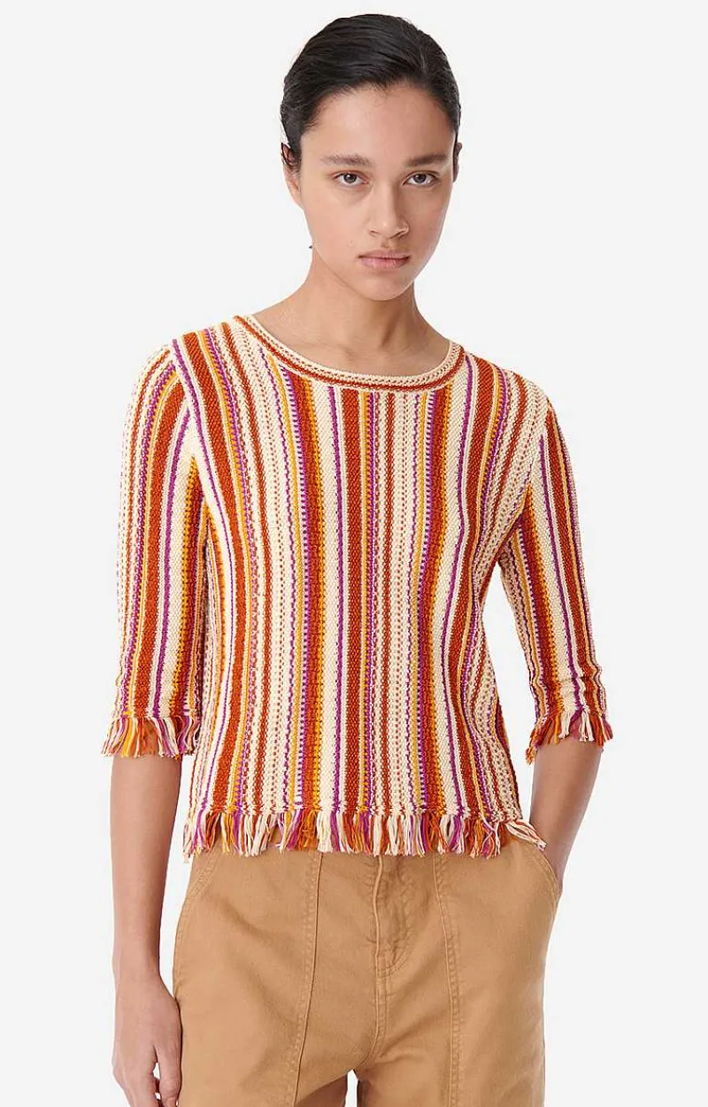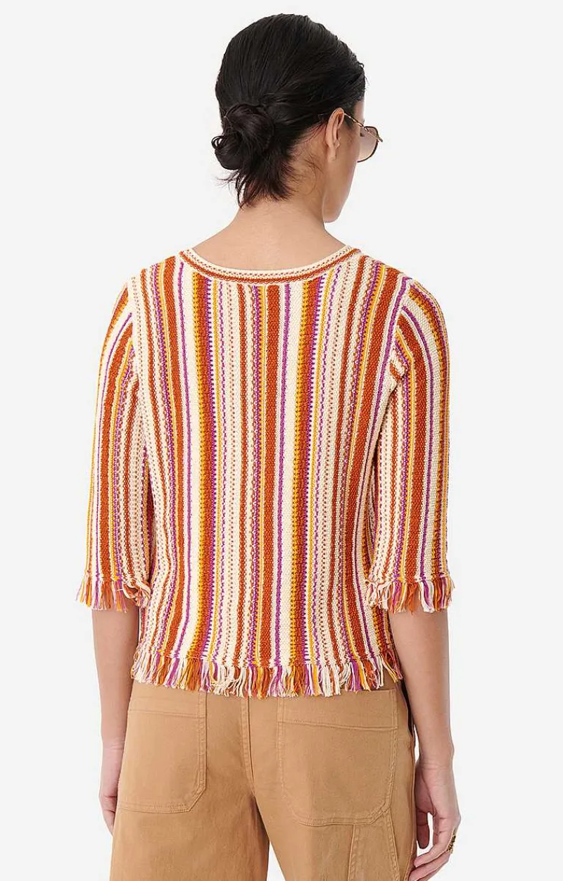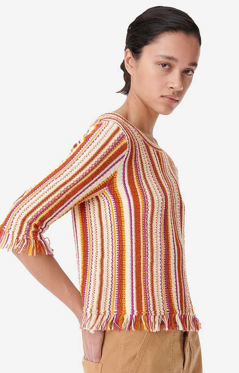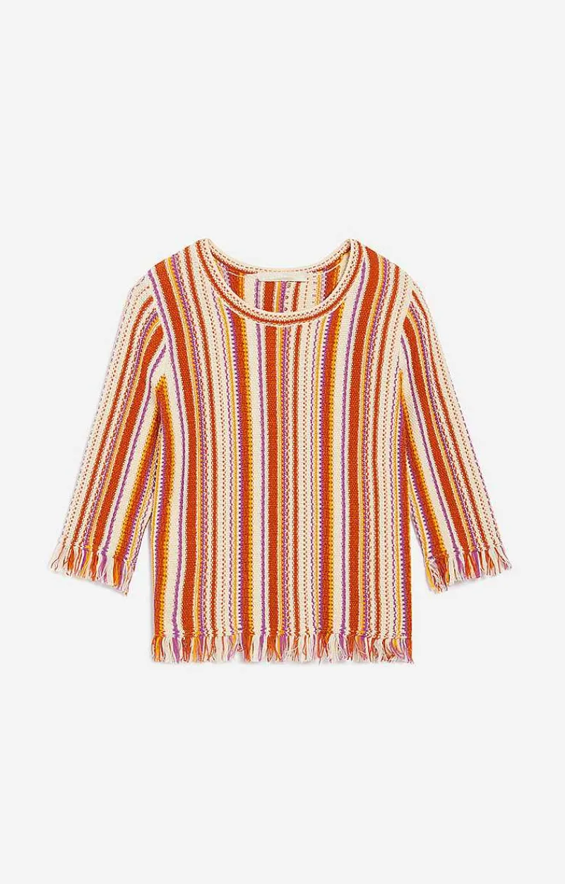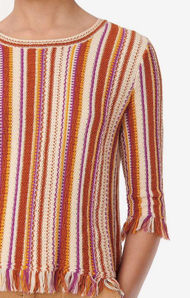 Cool And Bold, The Amira Jumper Promises To Brighten Any Look. Made From A Cotton Blend, This Colourful Stripe Design With Fringed Hems Can Be Worn With Denim Shorts Or A Linen Skirt.