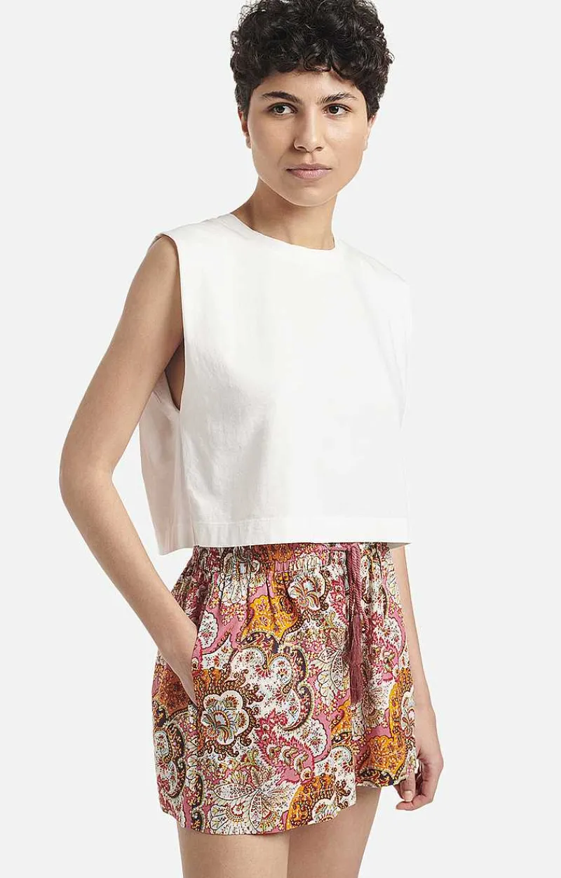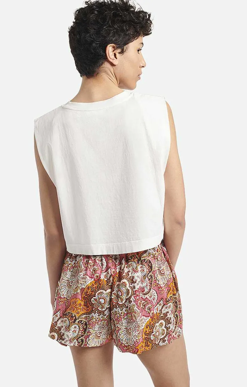 Good Basics Are Always Welcome In Summer! This White Cropped T-Shirt, With Rolled Up Sleeves And Seamless Armholes, Will Be An Easy Piece To Wear This Summer For A Cool, Effortless Look. Pair It With One Of Our Cute Short Designs With Mexican-Inspired Prints – The Theme Of Our Capsule Collection This Season.