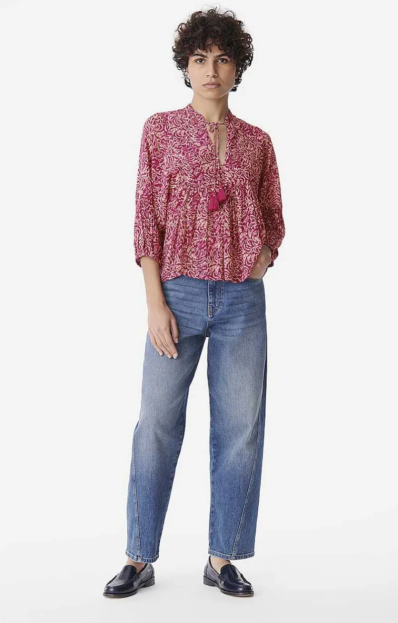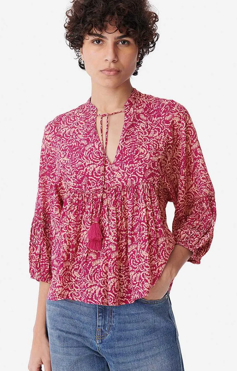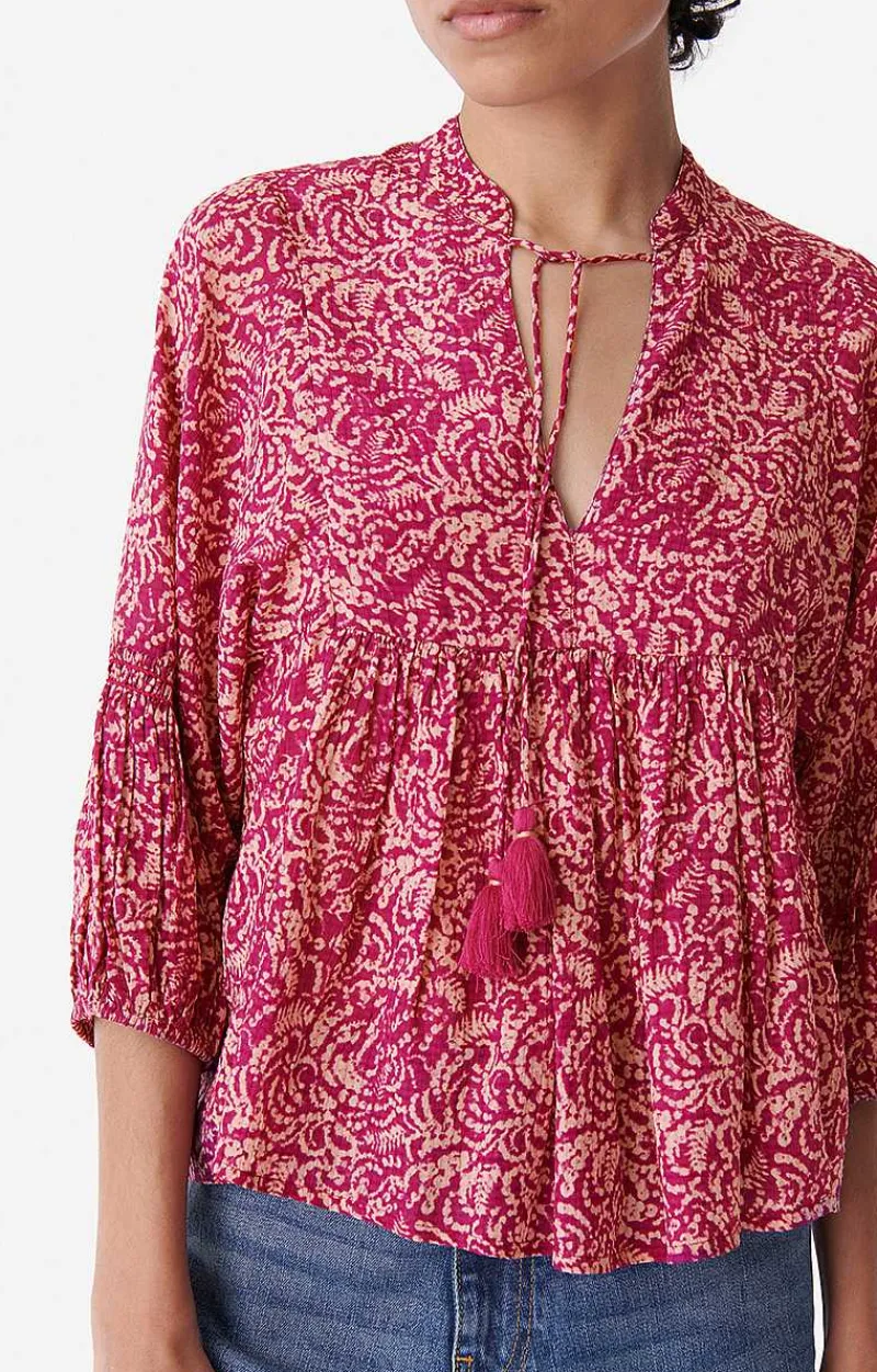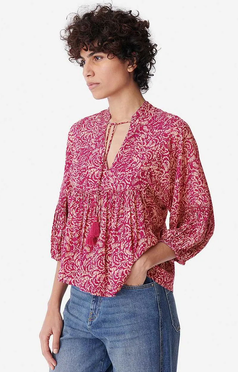 The Ultimate Bohemian Blouse, Baltik Has A Tunisian Neckline With Fine Ties And Pompoms, And Large Puffed Sleeves Thanks To Its Elasticated Hems.
