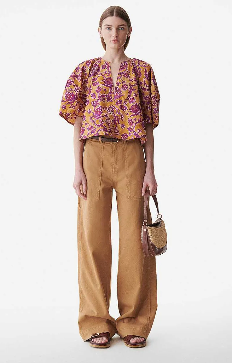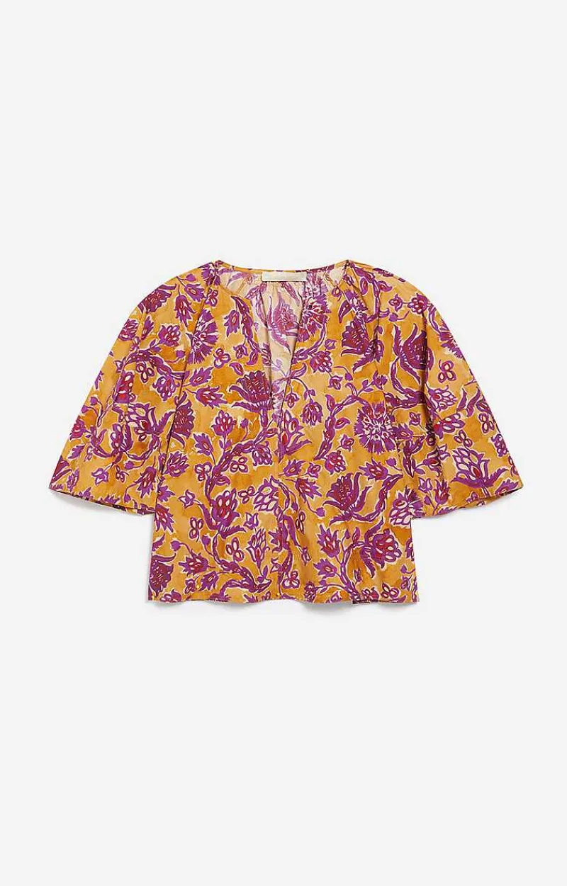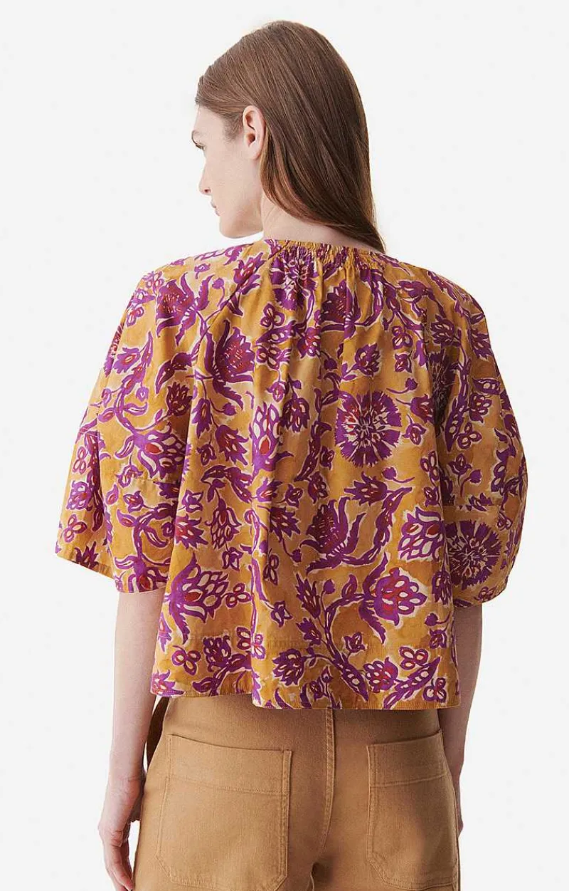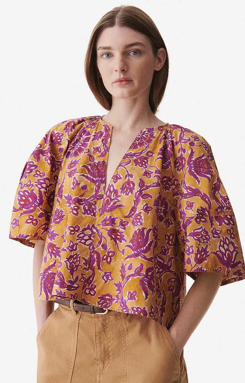 Cool And Characterful, The Brook Blouse Features Wide Rounded Sleeves, A Tunisian Neckline And A Cropped, Flared Cut. This Comfortable, Easy-To-Put-On Striped Cotton Poplin Top Is The Key To A Mastered Look In A Flash. This Season It Comes In A Floral Block-Print.
