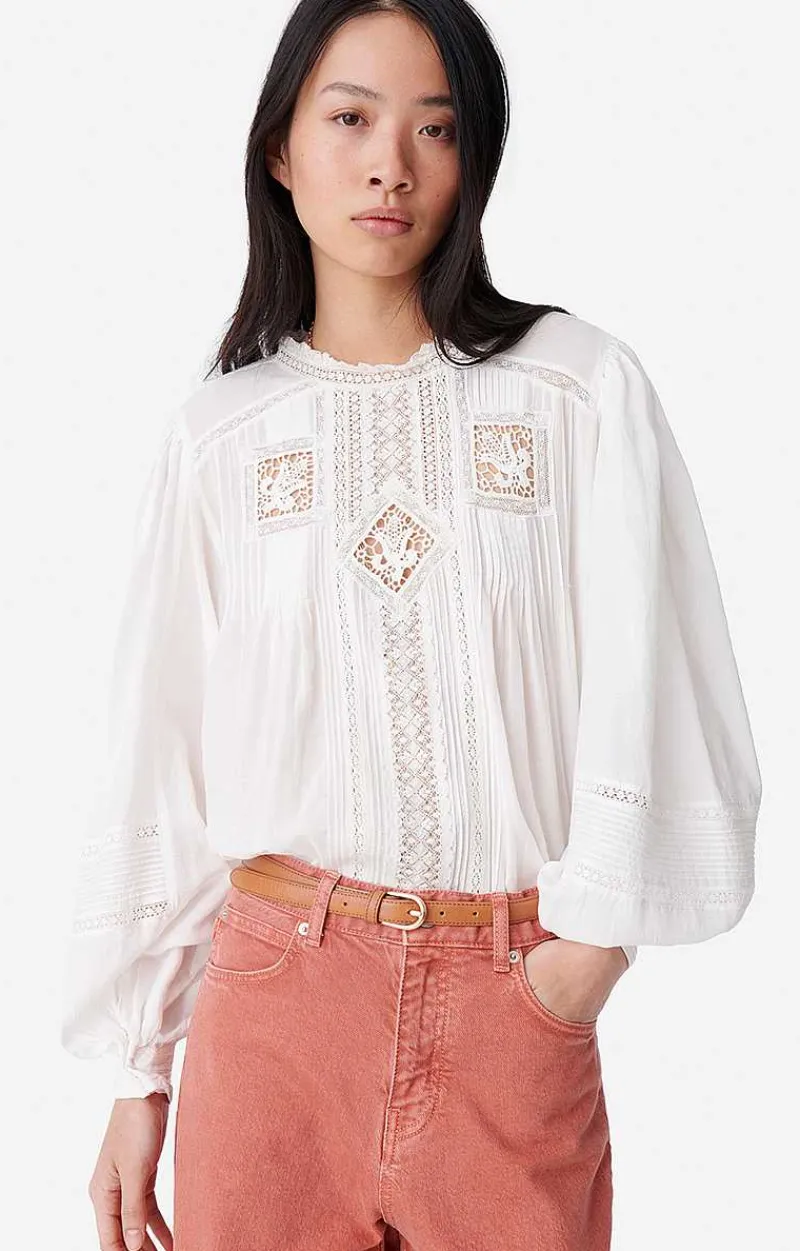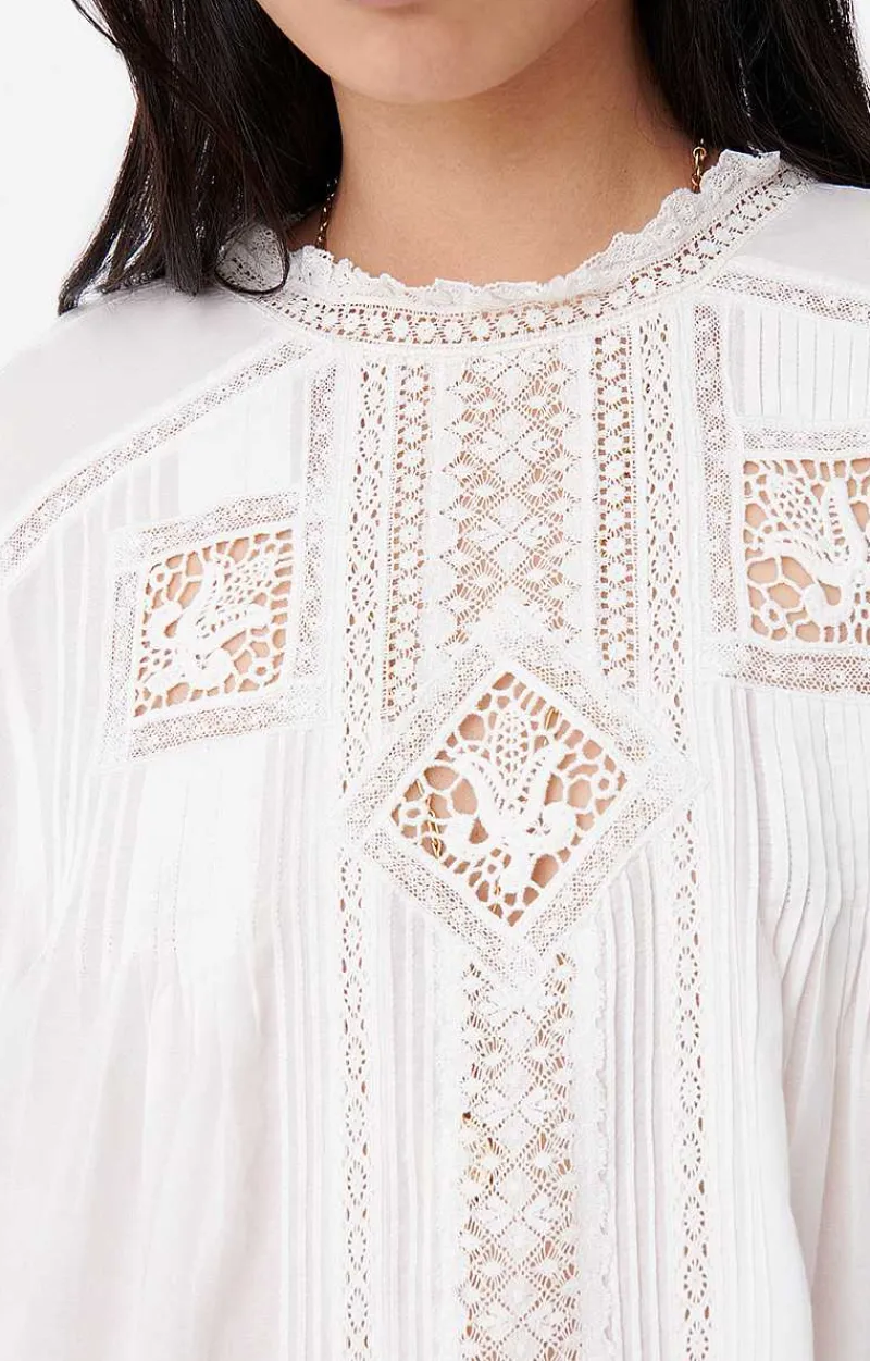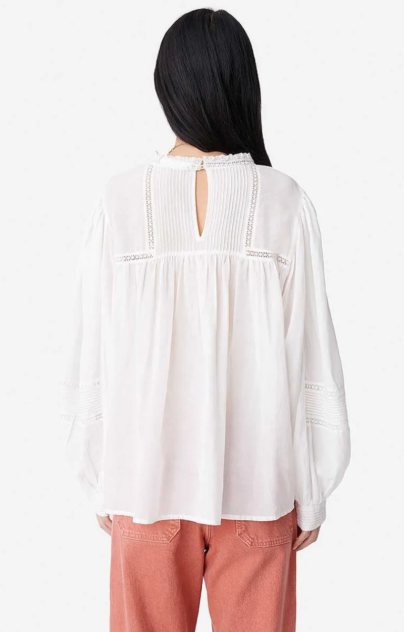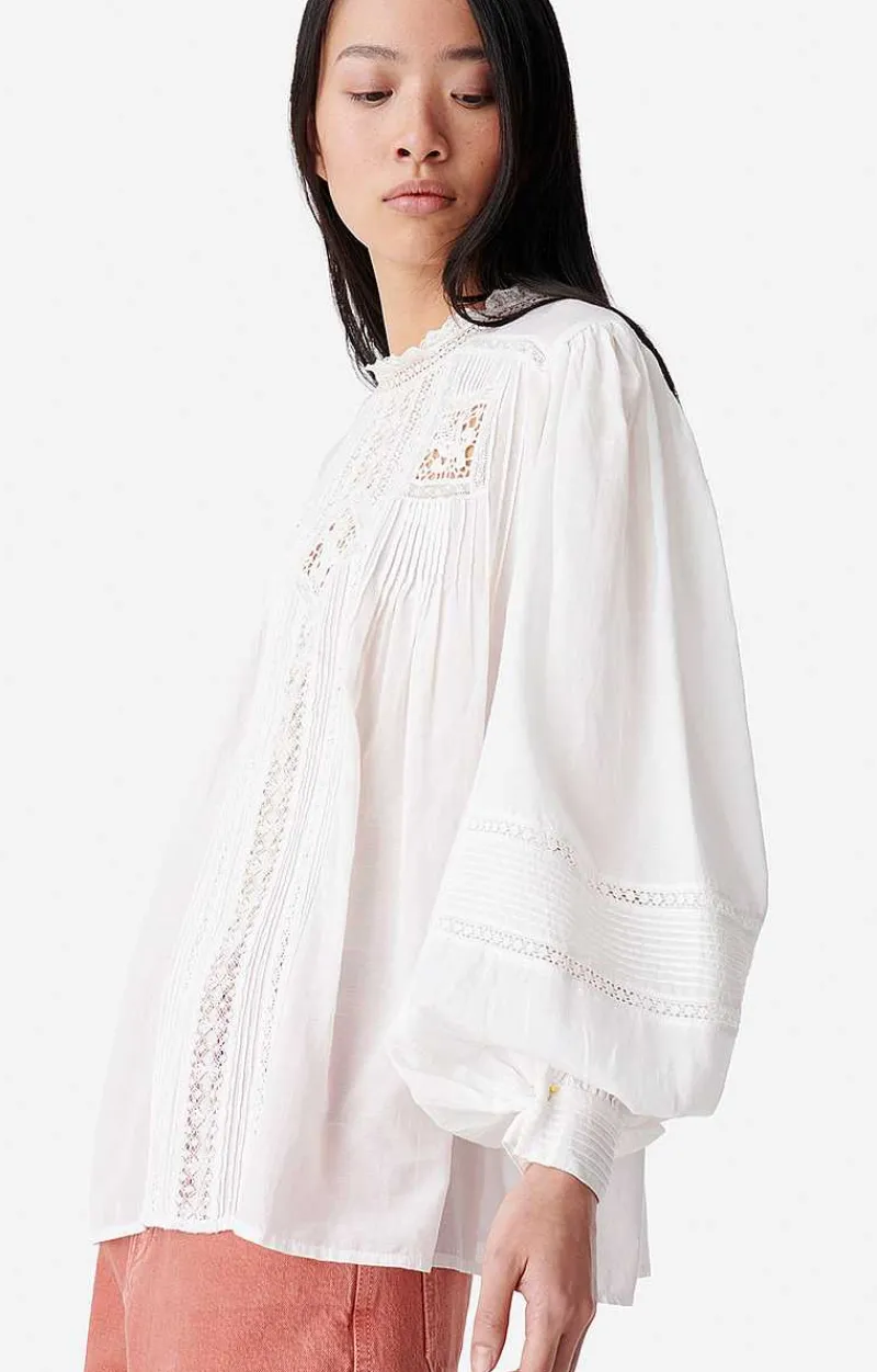 The Calin Blouse Plays With Vanessa Bruno’S Codes To Offer A Romantic, Vintage-Inspired Piece. It Stands Out For Its Stitched Pleat Work And Lace Inlay On The Front And Puffed Sleeves. We Love Its Ruffled Victorian Collar, Perfect For Showing Off Under A Sweater.