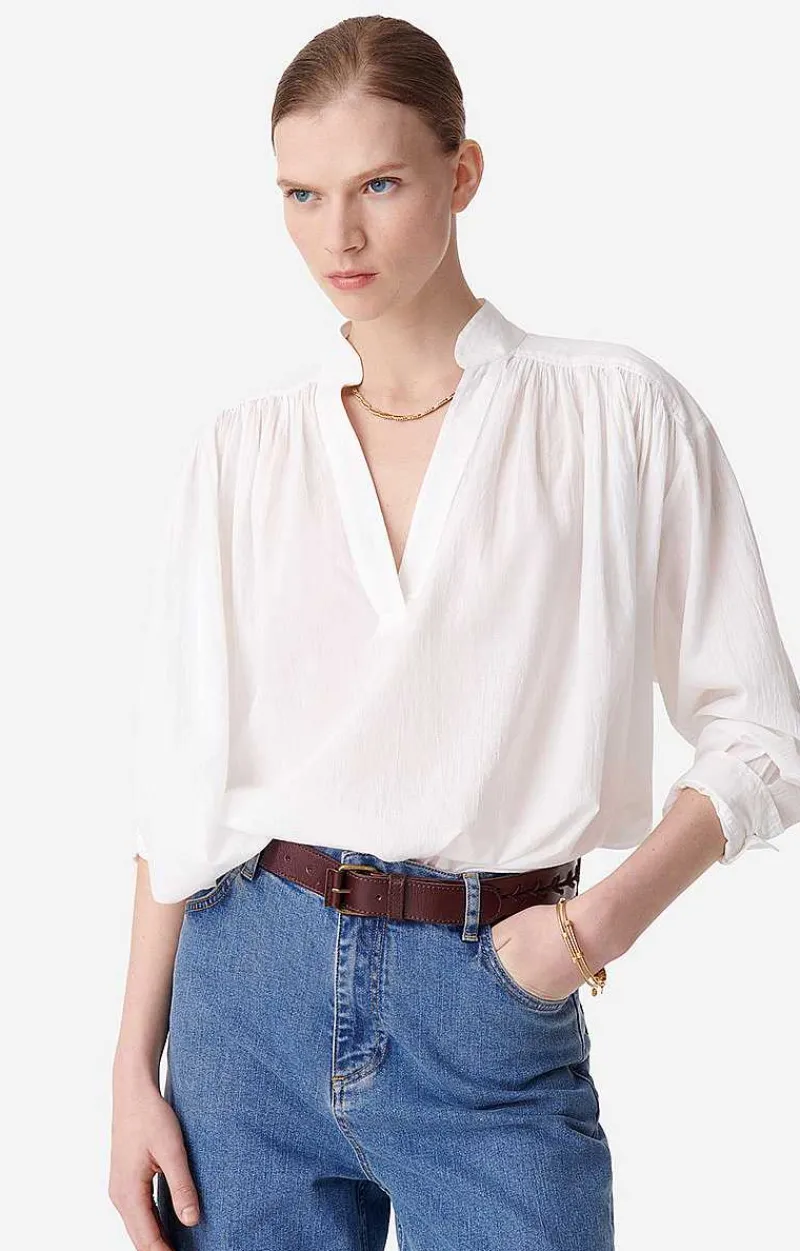A Shirt With A Refined, Minimalist Style. It Features A V-Neckline And Ruched Details On The Shoulders. This Flowing, Loose-Fitting Cotton Shirt Adds The Perfect Finishing Touch To Any Outfit.