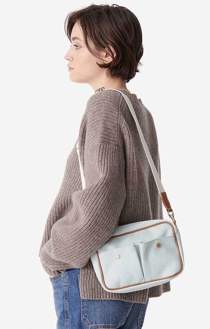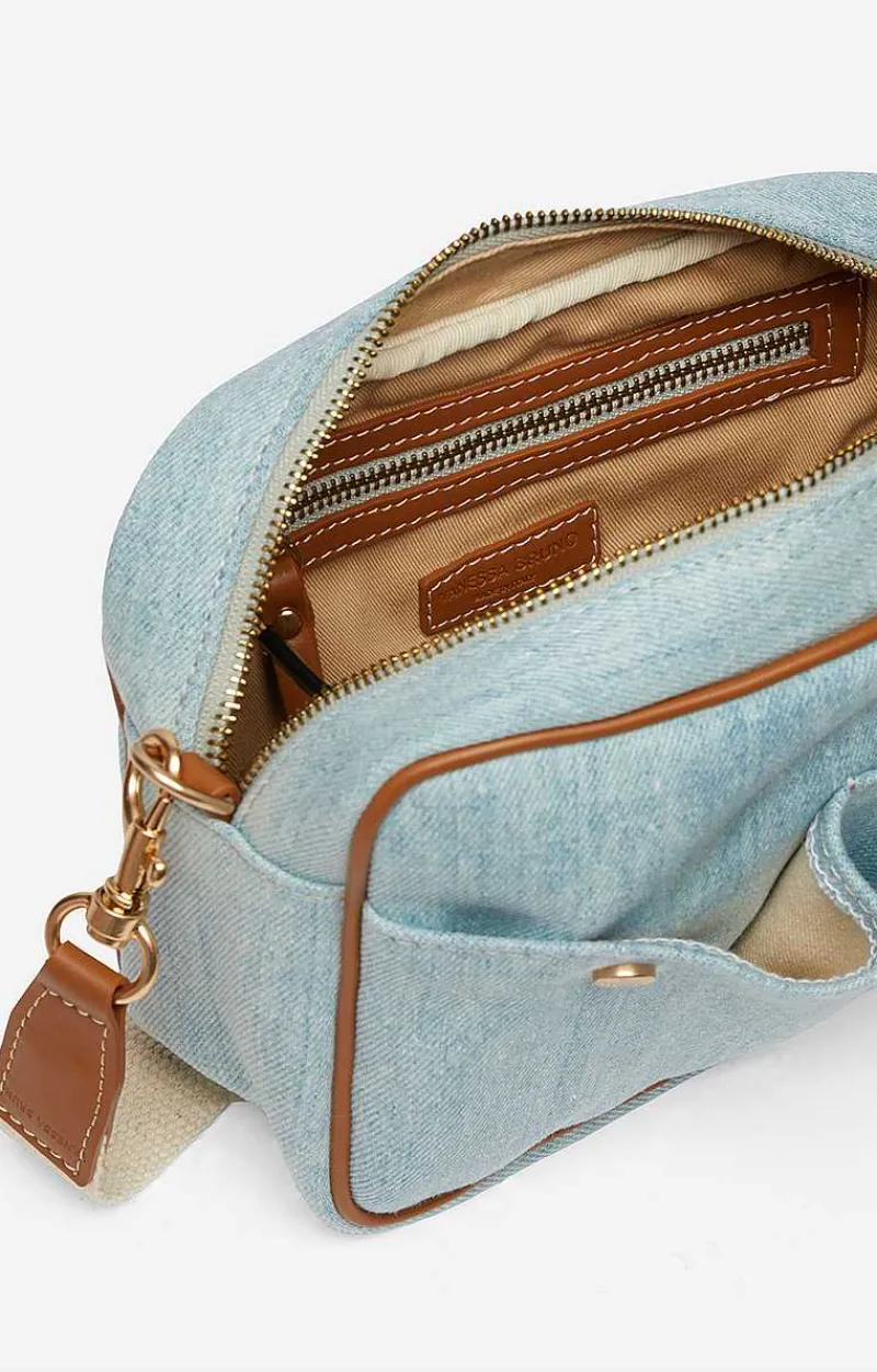 Camera Bag In Denim Cotton Canvas And Smooth Leather.