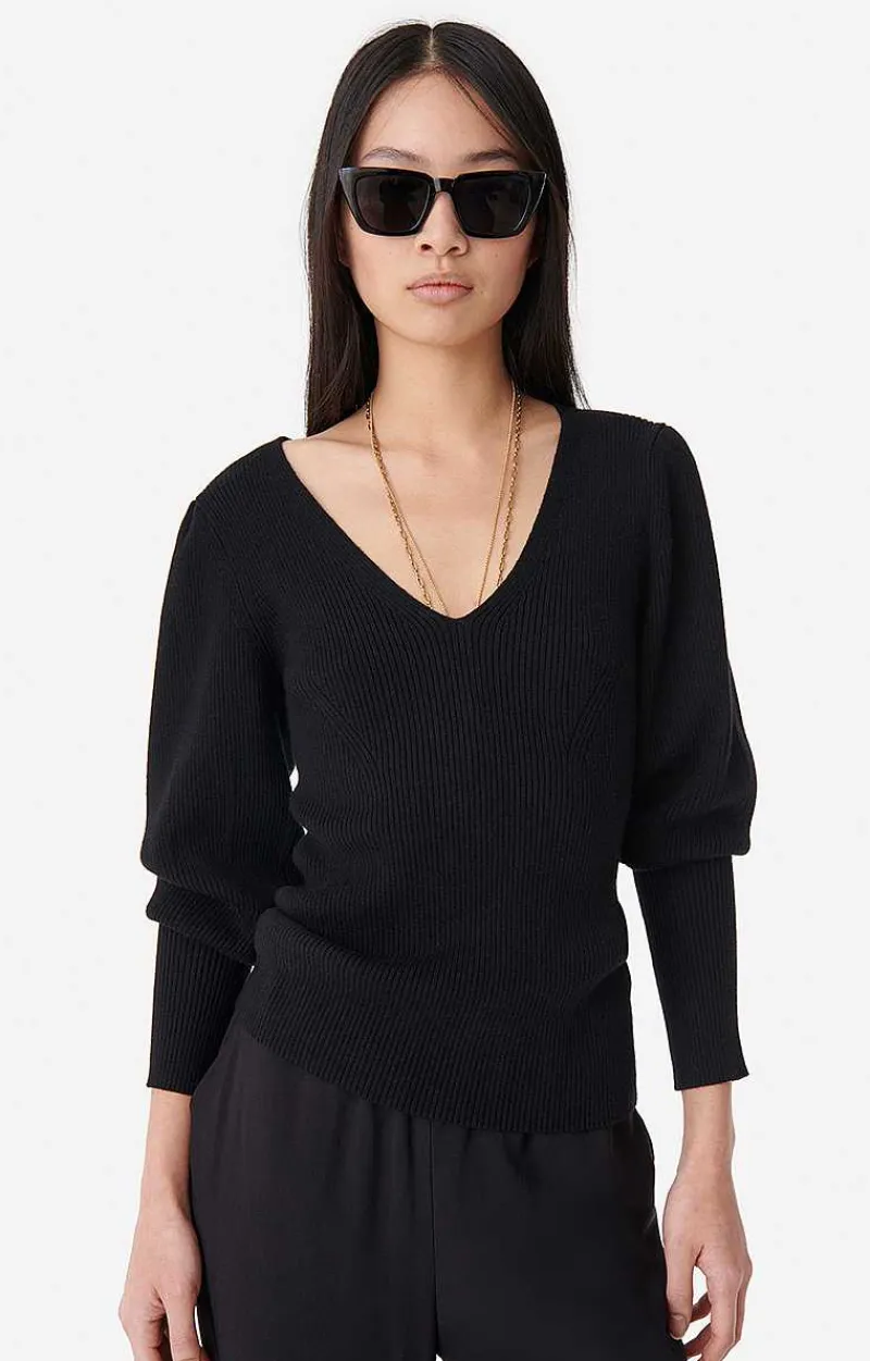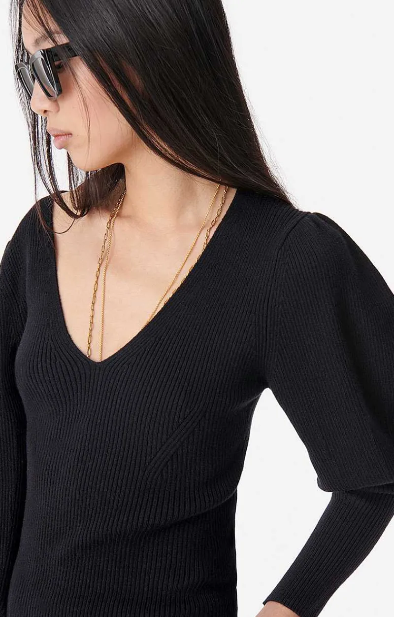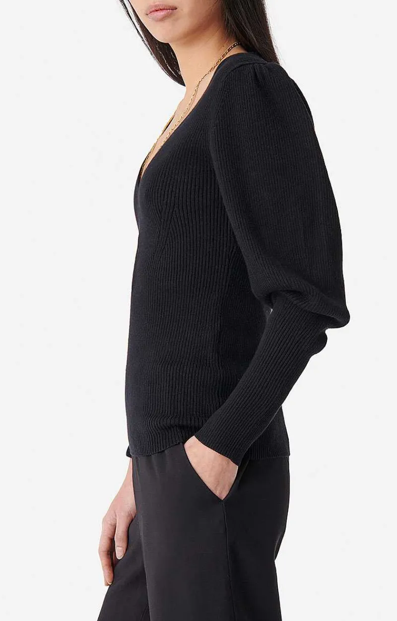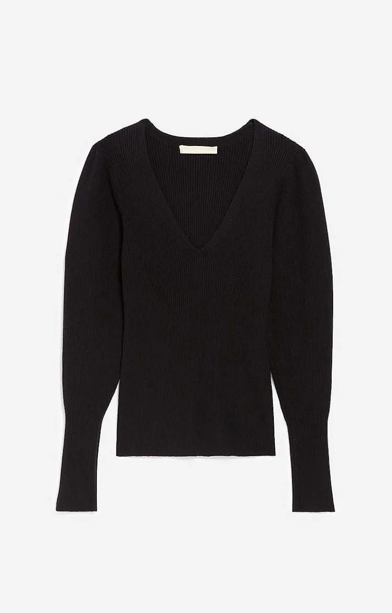 The Refined Ribbed Jumper, Made From A Blend Of Cotton And Wool. This Minimalist Piece Has A Unique Silhouette, With A Marked Waist And Rounded, Full Sleeves.