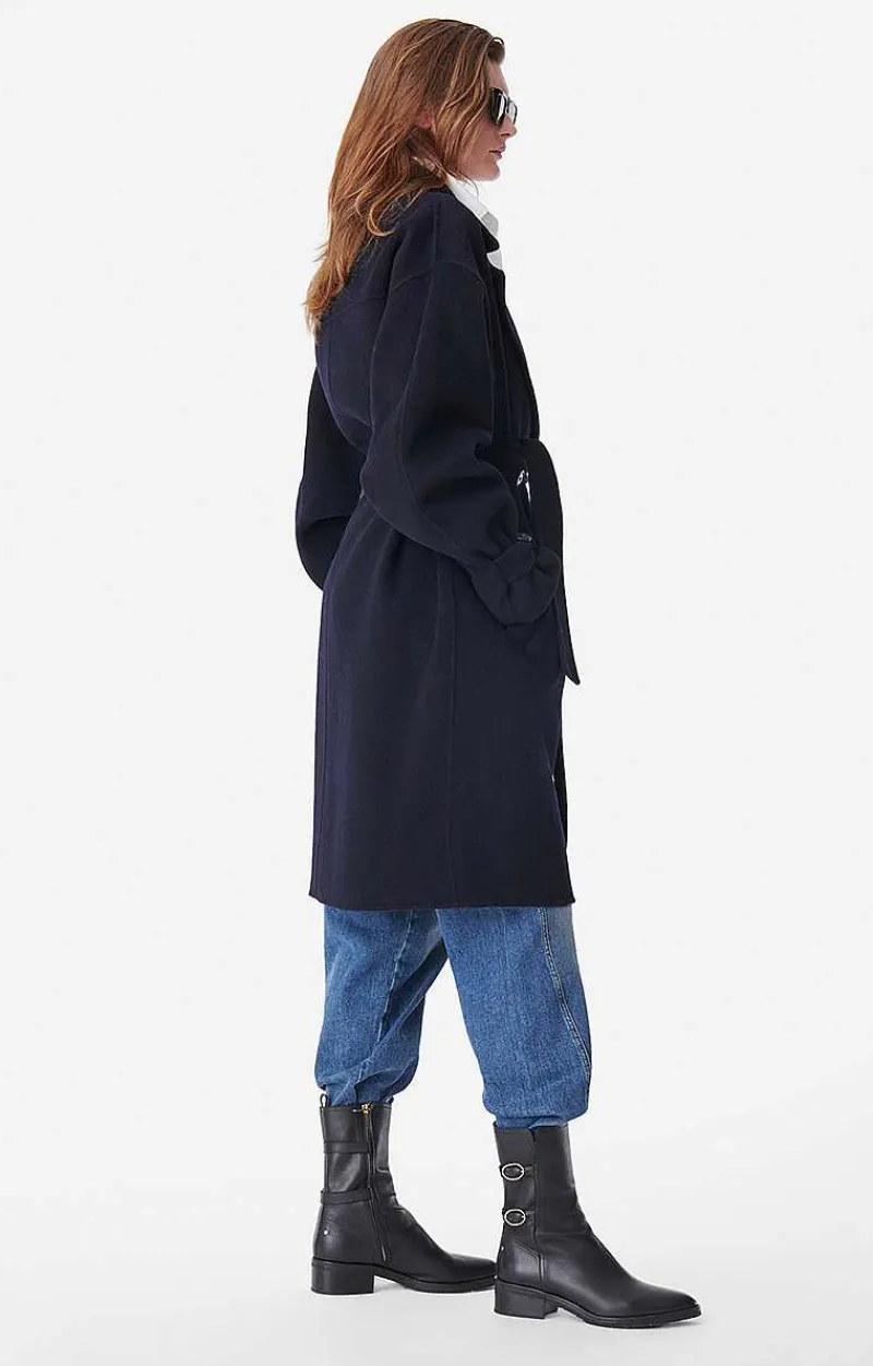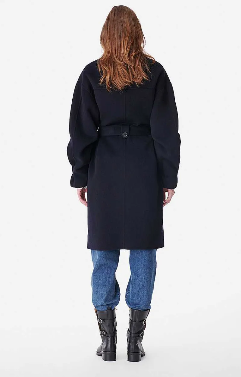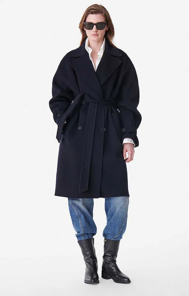 This Double-Faced Wool Coat Takes Up The Codes Of The Trench Coat, With A Masculine Allure, A Horn-Look Double-Breasted Fastening, Its Large Lapel Collar And Removable Belt.