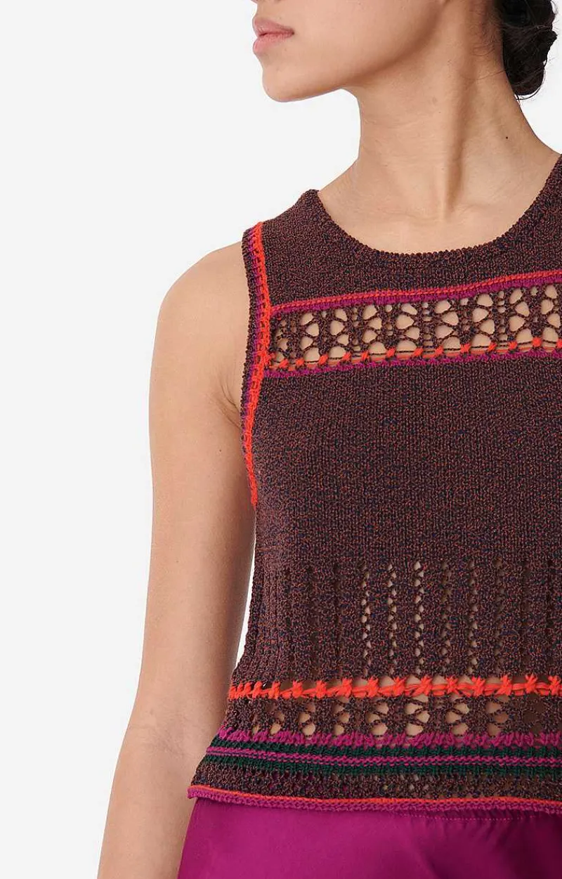 This Fancy Jumper Is Made From A Cotton Blend With A Variety Of Stitches And A Crochet Effect. Colourful With A Cropped Cut, It’S The Perfect Top For Days At The Beach, But Also For Events, To Match With The Cesarine Skirt.