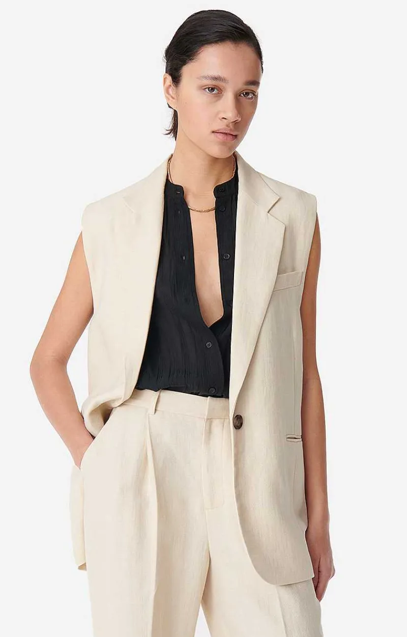 The Sleeveless Christen Jacket Has Everything It Takes To Become A Hit This Season. Made In A Cotton Blend, This Piece With A Tailored Collar And Sleek Line Guarantees An Elegant, Effortless Style. Wear It With A Flowing Shirt Or Over A Dress, On Its Own Or Under A Coat In Cooler Weather.