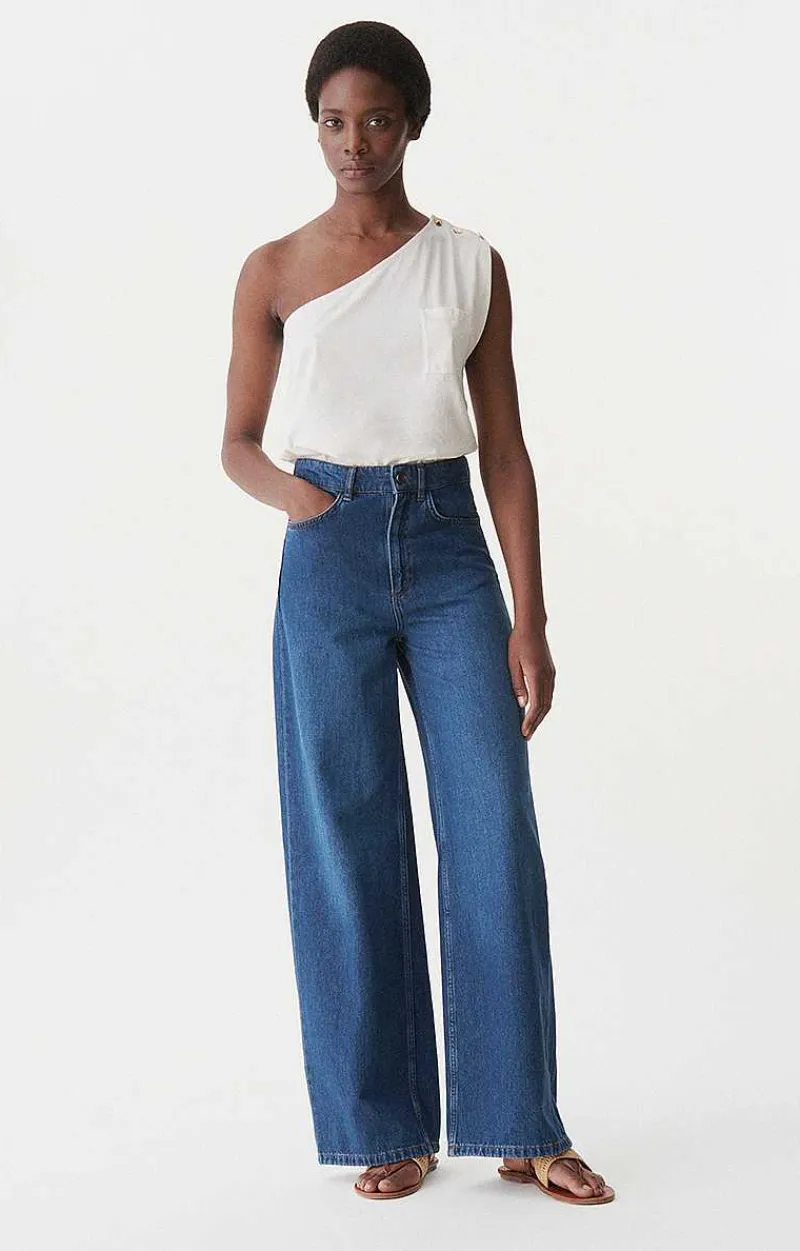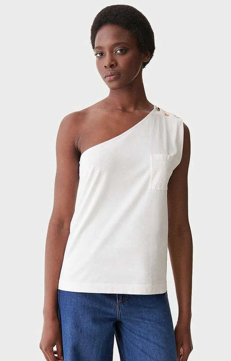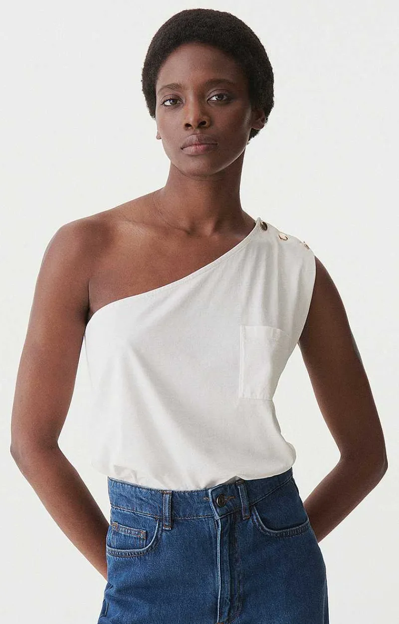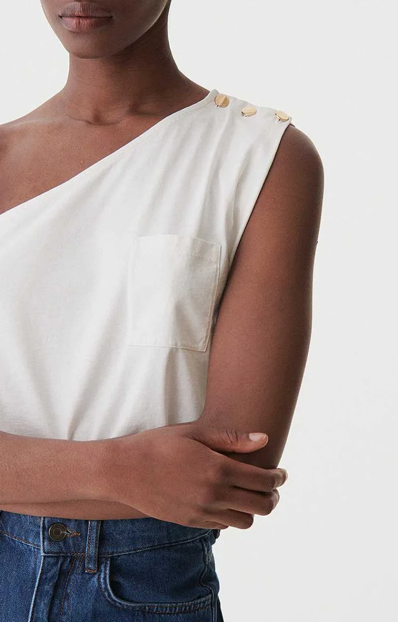 A Cool, Sophisticated Cotton T-Shirt With A Bare Shoulder. Ideal For A Touch Of Originality With Its Gold Buttons And Patch Pocket. Wear The Cipriana Top With All Your Outfits, From Dressy To Casual.