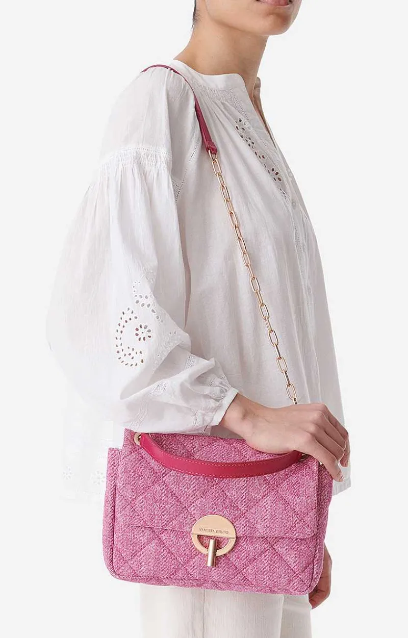 The Moon Bag, Emblematic Of The Vanessa Bruno Brand, Is One Of Those Icons That Needs No Introduction. Chic And Versatile, This Delicate Version Features A Summery Cotton And Once Again Features Its Iconic Round Clasp. Enhanced With A Chain And Leather Shoulder Strap, This Cool And Elegant Handbag Will Accompany All Your Movements.