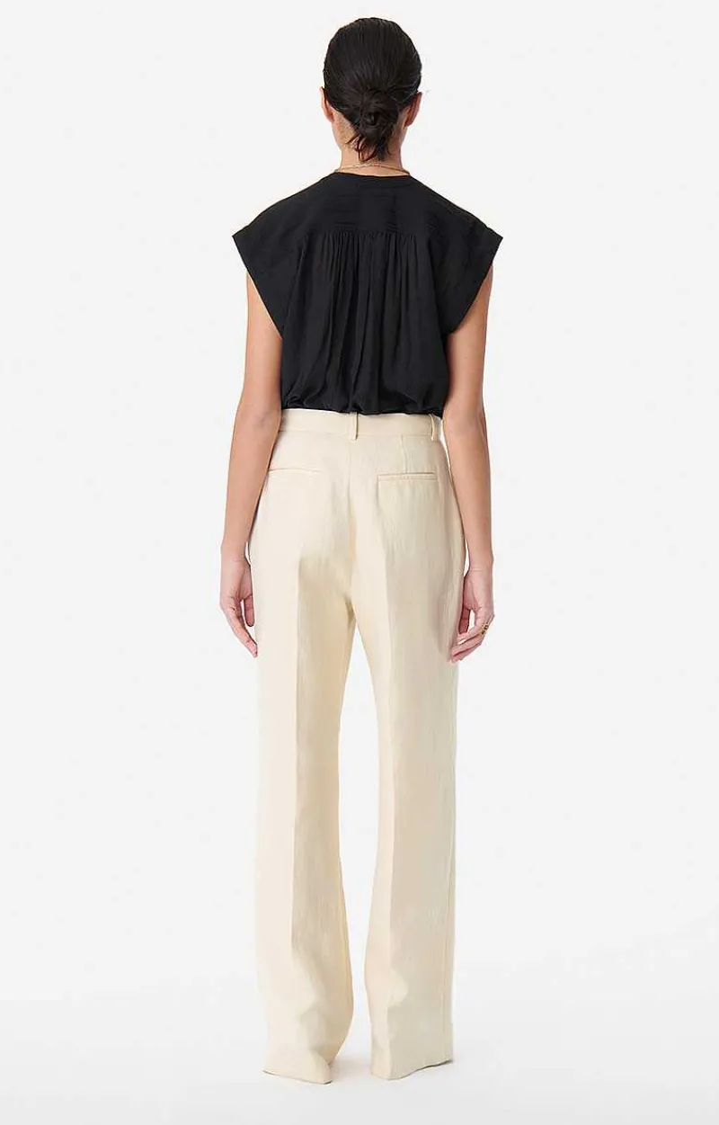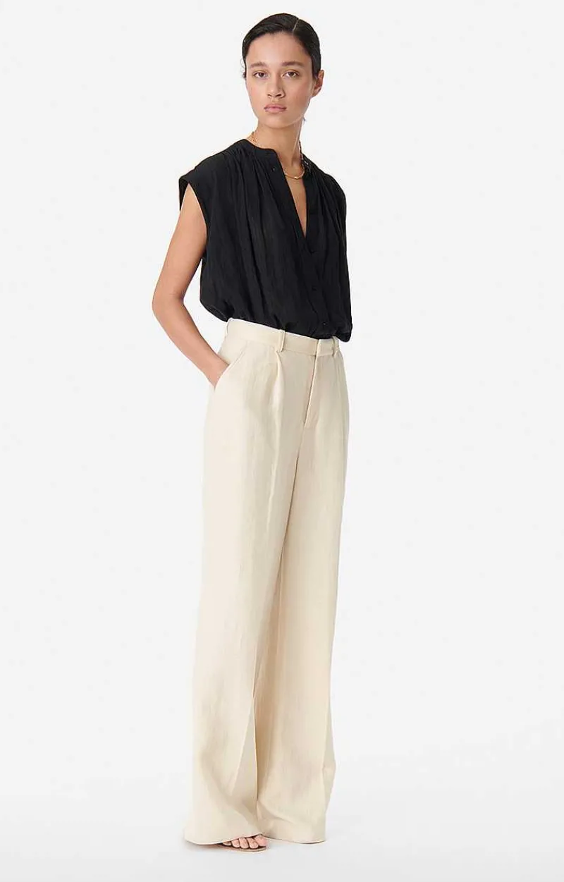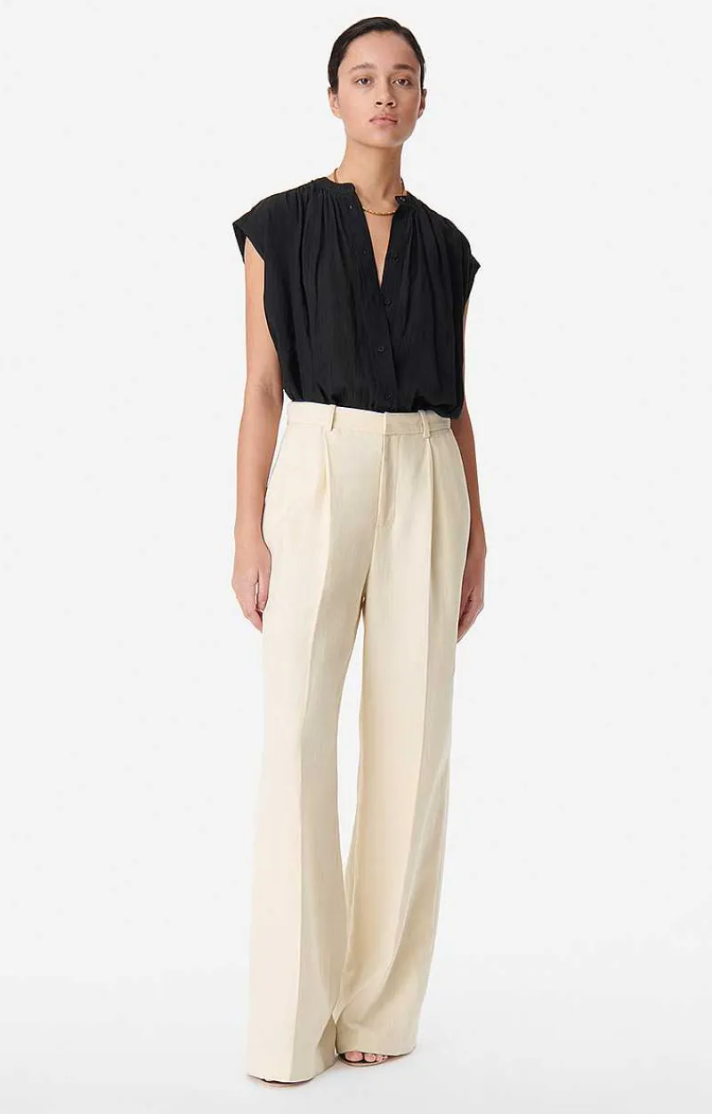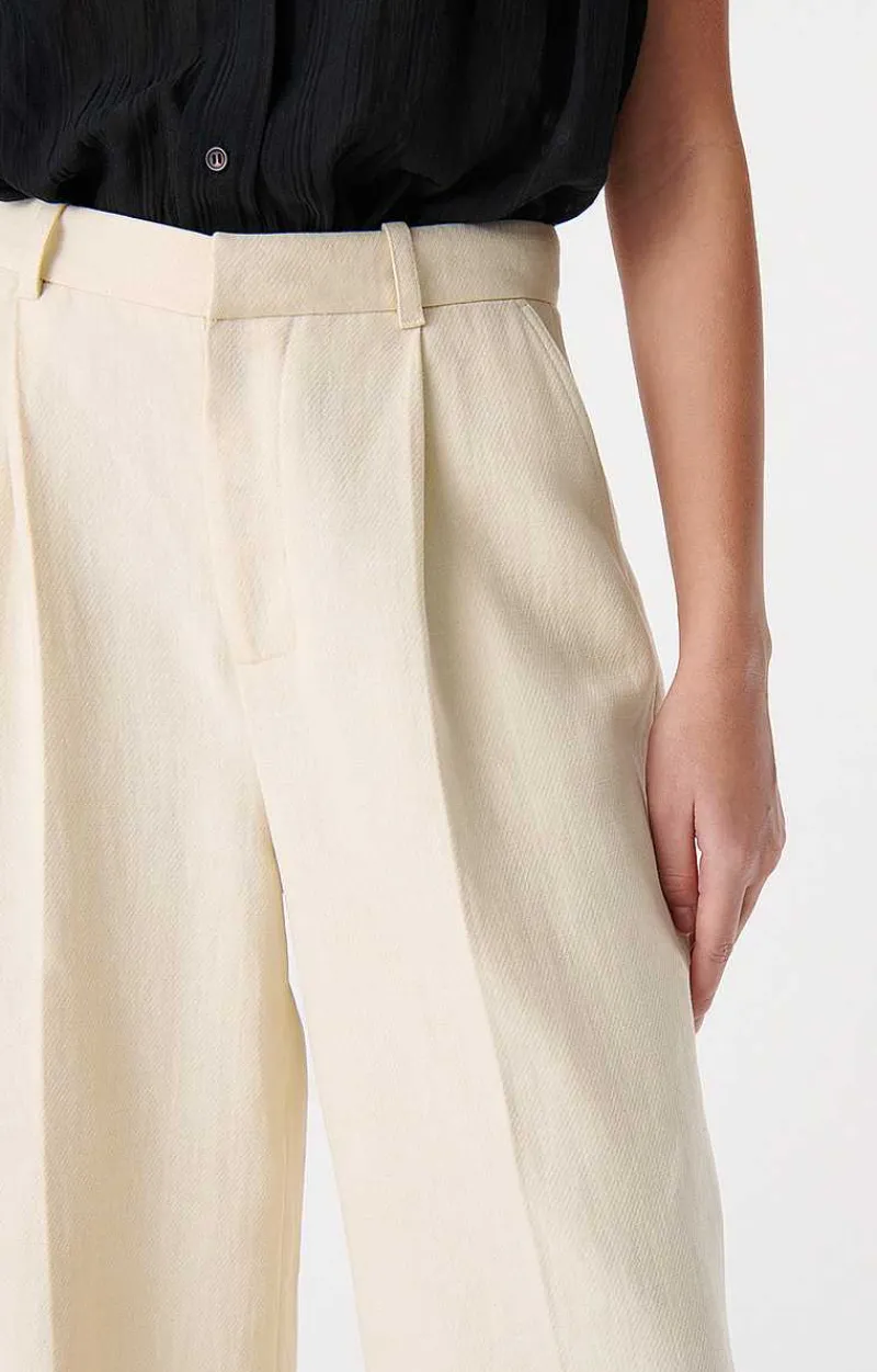 These Pintuck Trousers Are Masculine, Straight And Wide. Made From A Cotton And Linen Blend, This Piece Has A Subtle Texture And A Natural Look. With Pleats On Each Leg, The Cyrano Trousers Are Both Elegant And Casual. Wear Them With The Caline Jacket For An Impeccable Two-Piece.