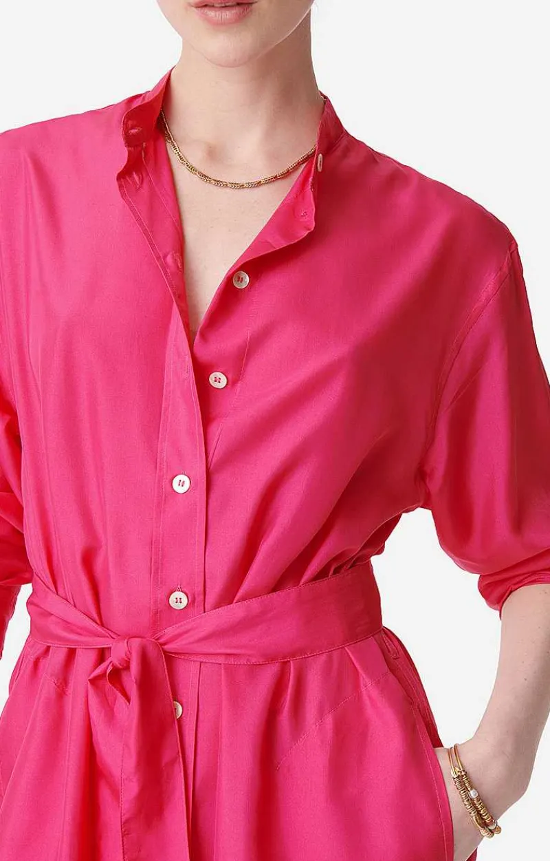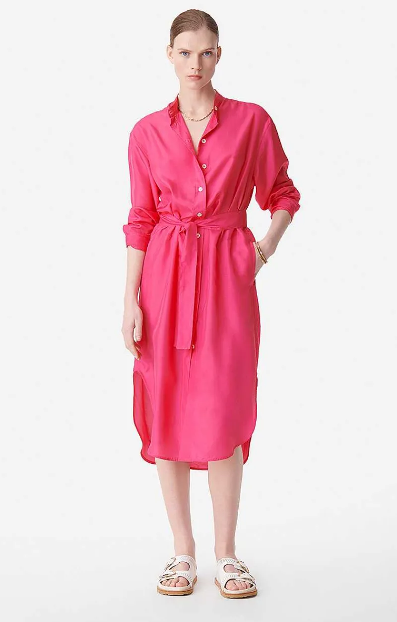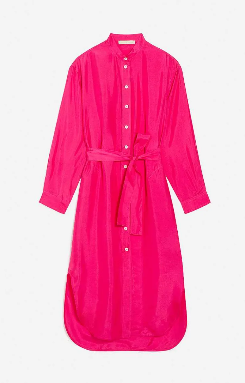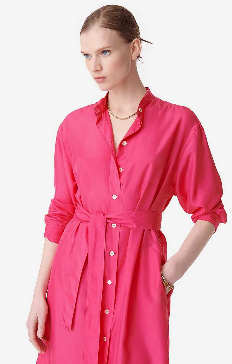 The Minimalist Landric Dress Is Made From Silk For An Elegant Yet Comfortable Look. Long And Flowing, The Waist Is Defined With A Removable Belt. This Sleek Piece Features A Round Neck And Pearly White Ankle Boots.