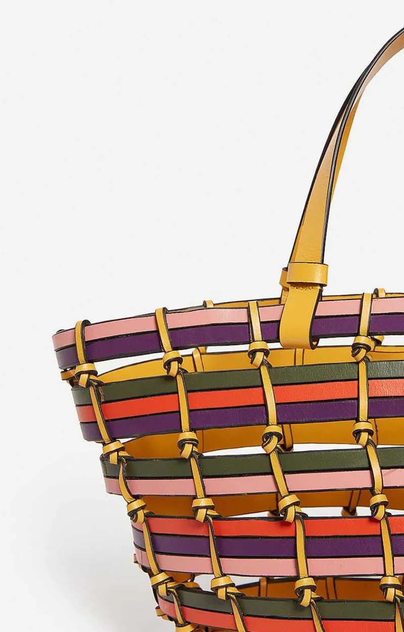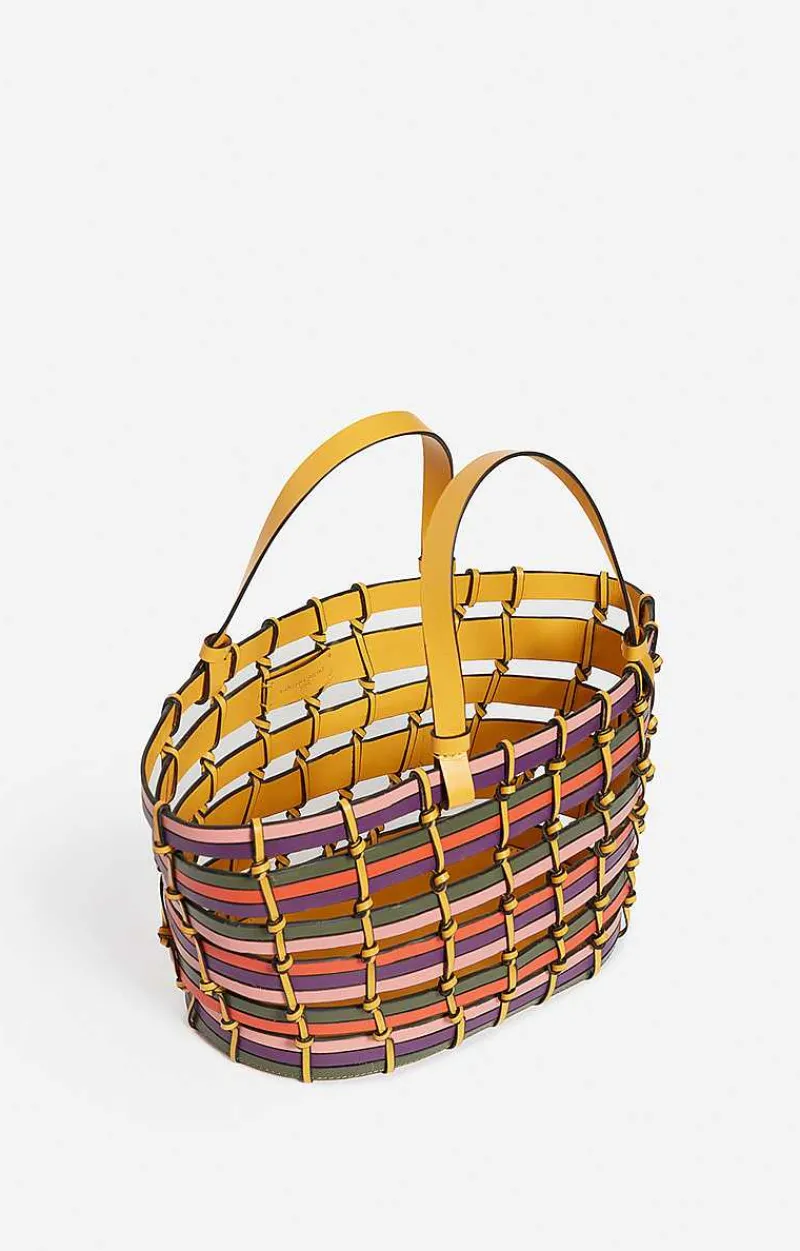 Playful And Colourful, This Unique Bag Features Knotted Weaving. Handmade, This Basket Will Add A Touch Of Imagination To Your Outfits. Whether You’Re Taking It To The Market Or Out For A Night On The Town, It’S A Versatile Bag That Will Enhance Your Look.