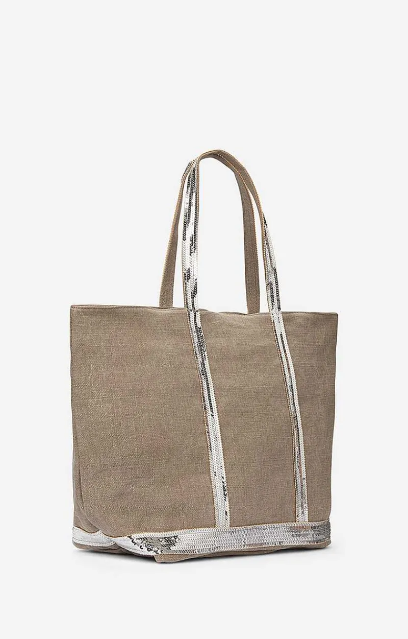 A Version Of The Iconic Vanessa Bruno Tote Bag, This Linen Design, Both Versatile And Light, Is The Ideal Companion. Large Linen And Sequins Cabas Tote Larger Handle For Carrying By Hand Or On The Shoulder. It Has A Zipped Inside Pocket, Topped With A Label Made Of Natural Plant Leather, Hot Stamped With “Le Cabas Vanessa Bruno Made In France”. Very Light. Soft And Flexible. Our Tote Is Made In France By Our Partners, With Whom We Have Worked Closely For 25 Years. Our Linen Is 100% Natural And Eco-Friendly. It Comes From Belgian, Known Worldwide For The Durability Of Its Fibres.The Quality Of The Local Manufacture Makes It The Perfect Ally For Women On The Go Who Need To Carry A Little More Than Just The Essentials.