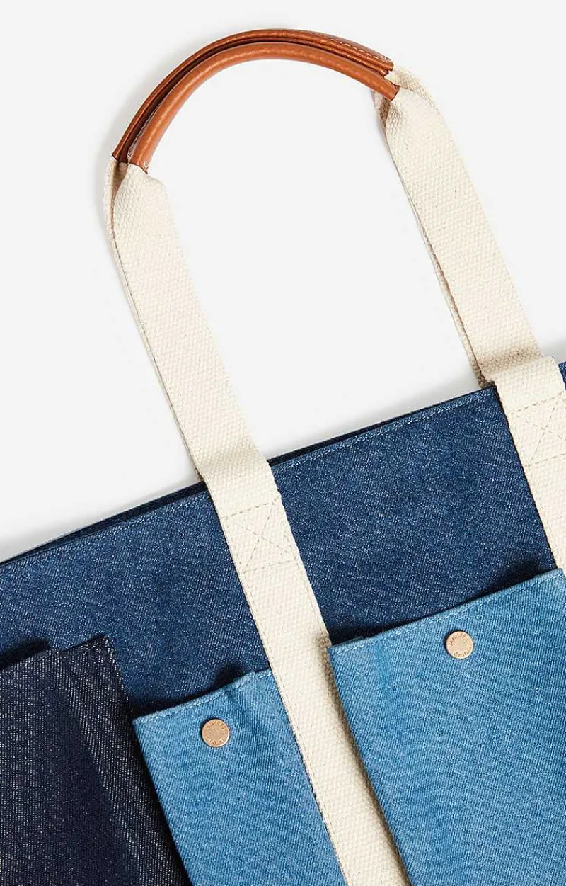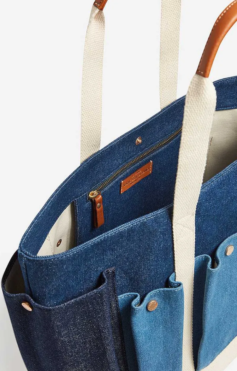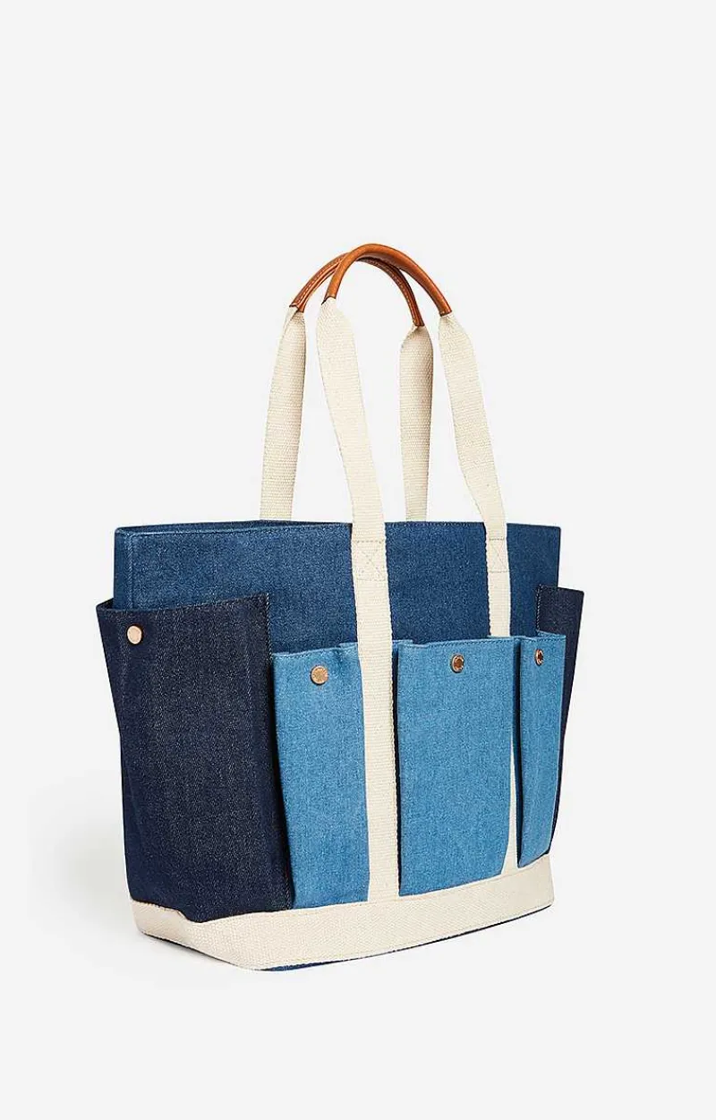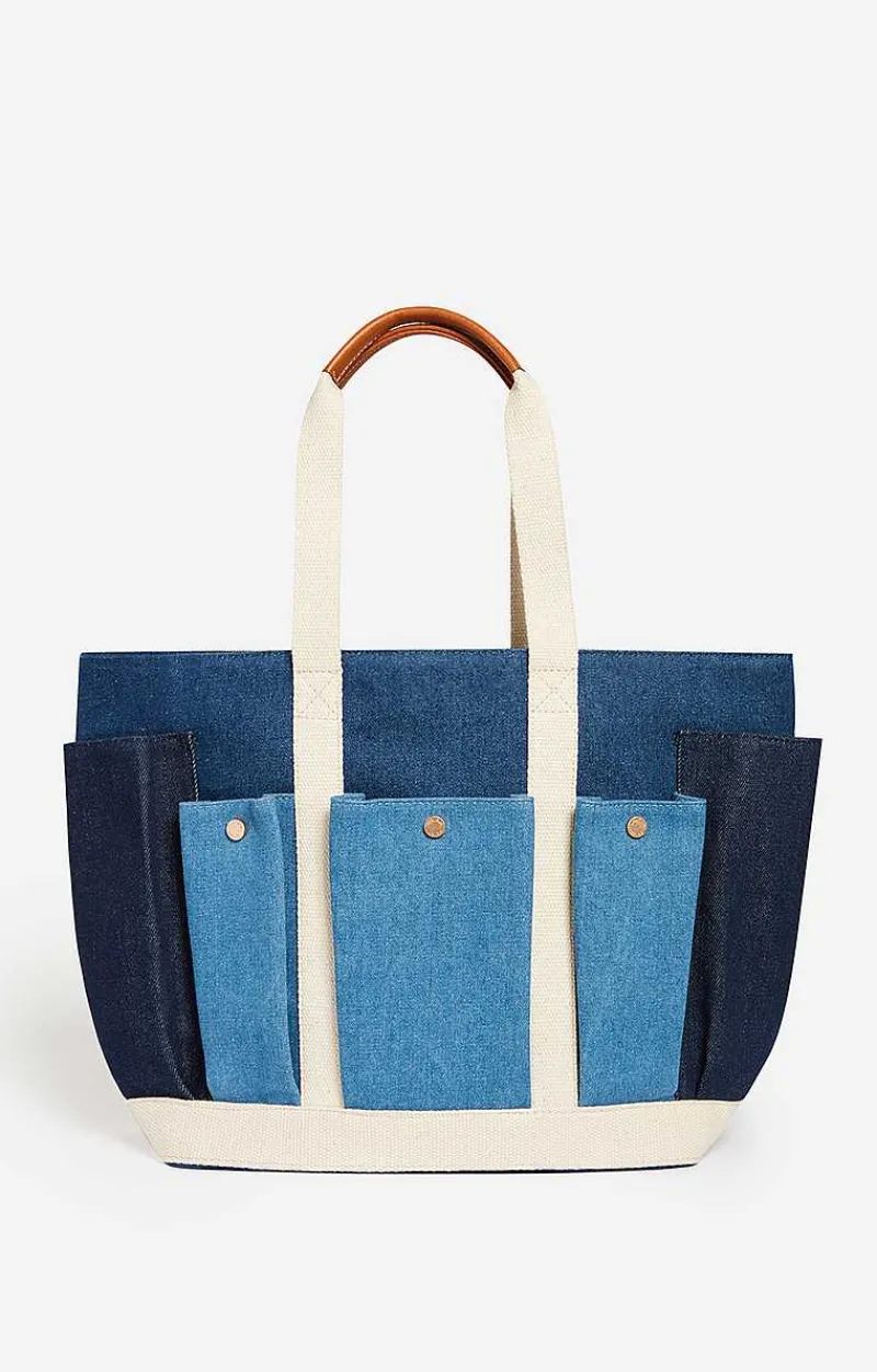 Large Multi-Pocket Tote Bag In Denim Cotton Canvas.