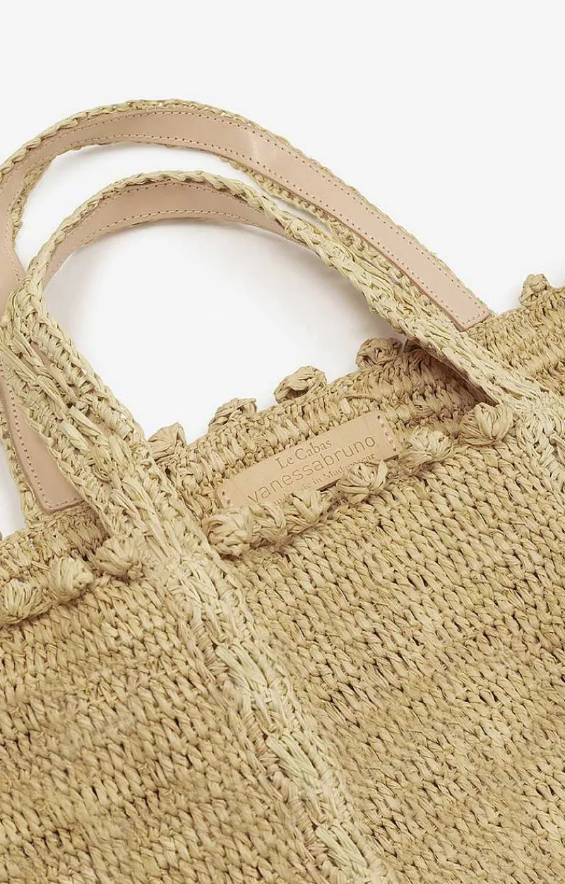 Composition : Main Material: 100% Raffia. Secondary Material: 100% Cowhide Leather Vegetable Tanning